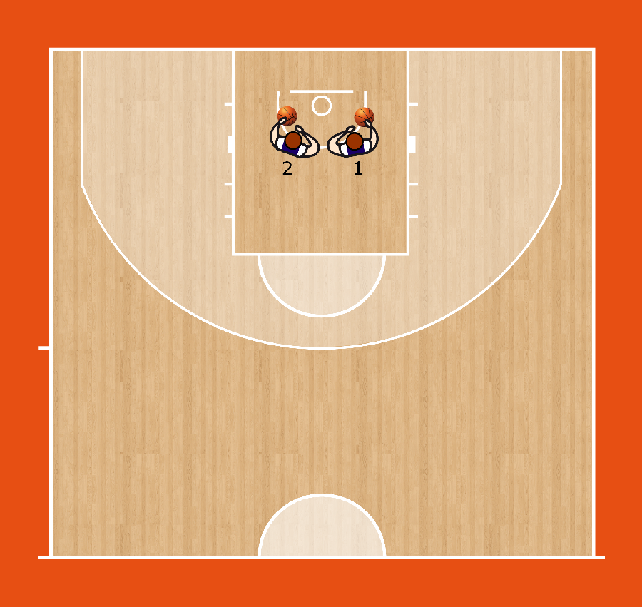 TAP-IN CONTINUI Due giocatori, ognuno con un pallone, fronte a canestro su un lato del tabellone. Fare quattro tap-in consecutivi con mano destra ed al quinto indirizzare la palla a canestro. Ripetere con la mano sinistra.